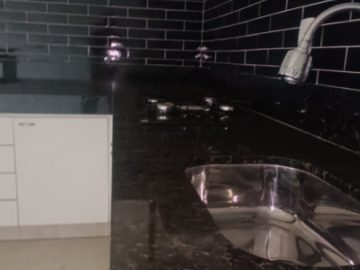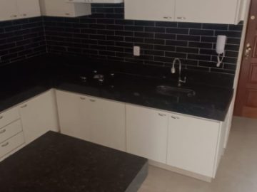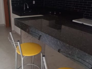 * 01 Cozinha estilo americana, com bancada em granito, pia em granito, armário planejado;